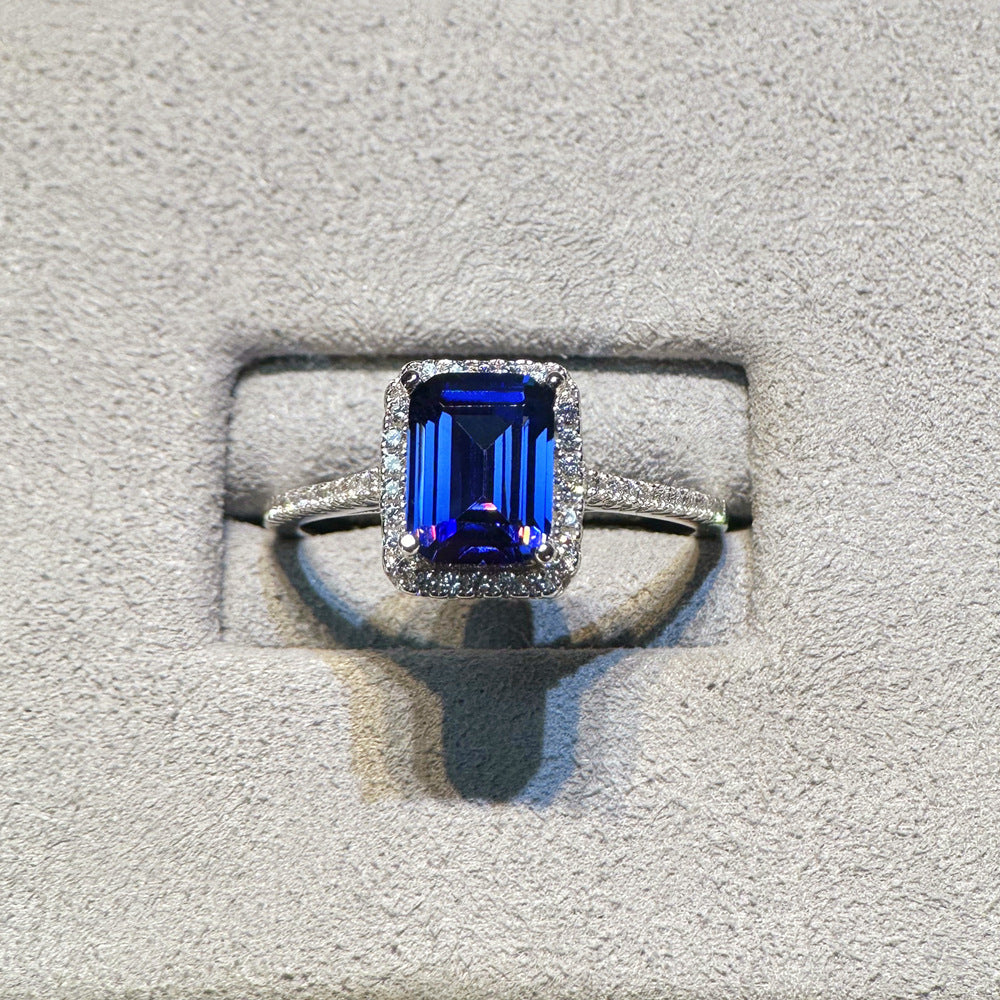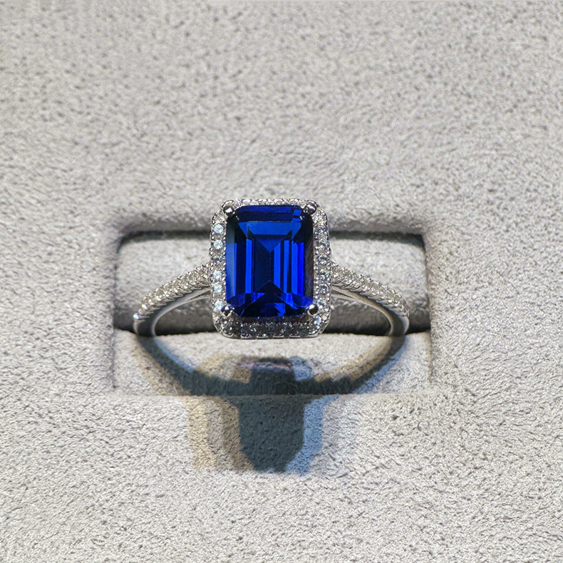 European and American retro classic direction inlaid 925 sterling silver ring women's 6 * 8 tanzanite sapphire ring spot wholesale