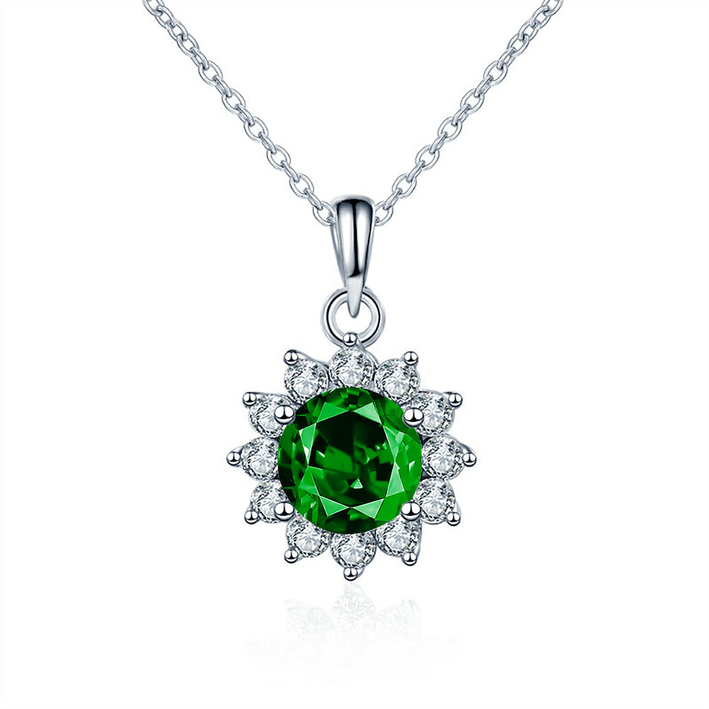 Factory direct sales emerald zircon necklace female S925 sterling silver collarbone chain live broadcast hot sale colored treasure pendant high sense