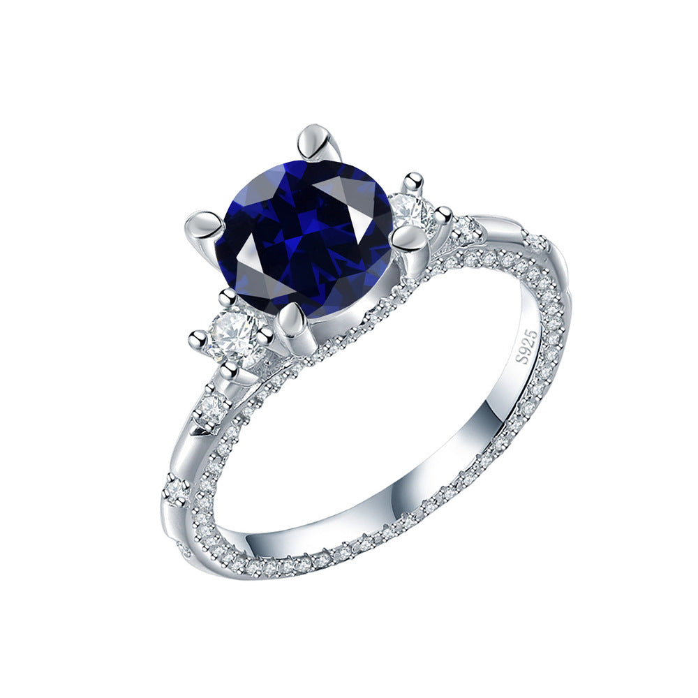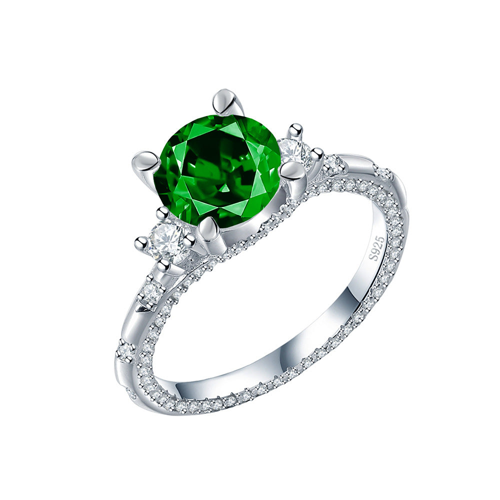 Factory direct sales simulation gemstone ring women's sterling silver fashion high-end ring cross-border foreign trade for jewelry wholesale
