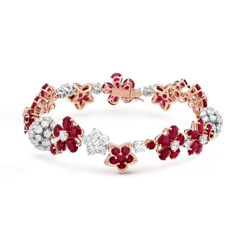 Folie des Prés bracelet. Rhodium-plated 18K white gold, 18K rose gold, rubies, diamonds.
