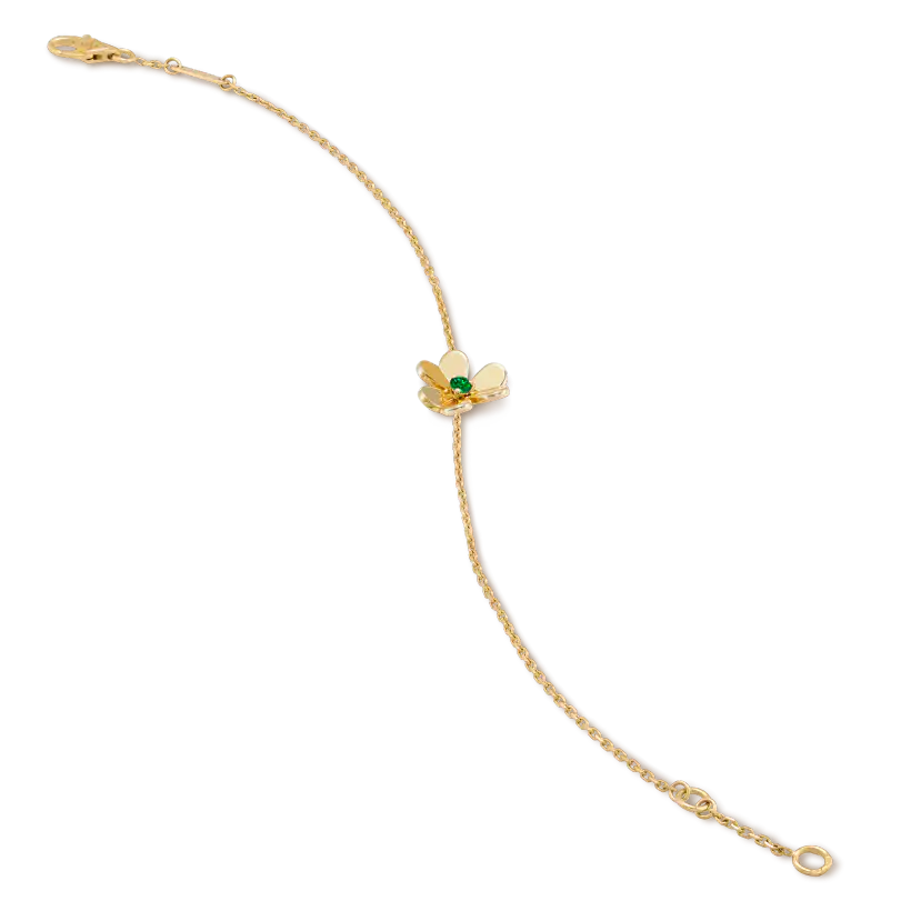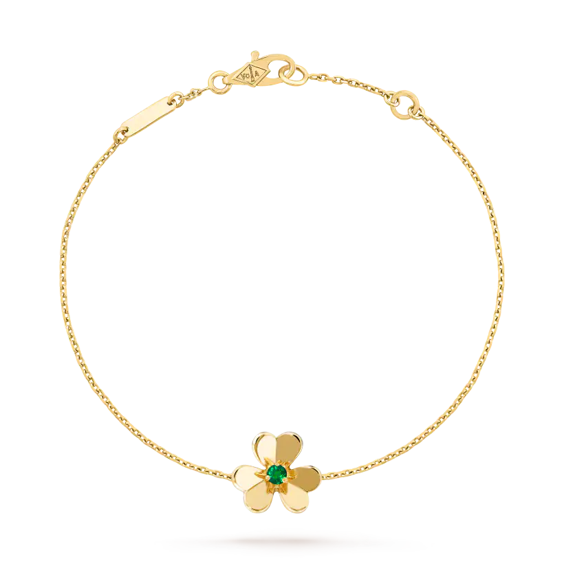 Frivole bracelet, mini model, 18K yellow gold, round emeralds