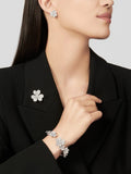 Frivole bracelet, 7 floral motifs, rhodium-plated 18K white gold, round diamonds, medium model; diamond quality DEF, IF to VVS.
