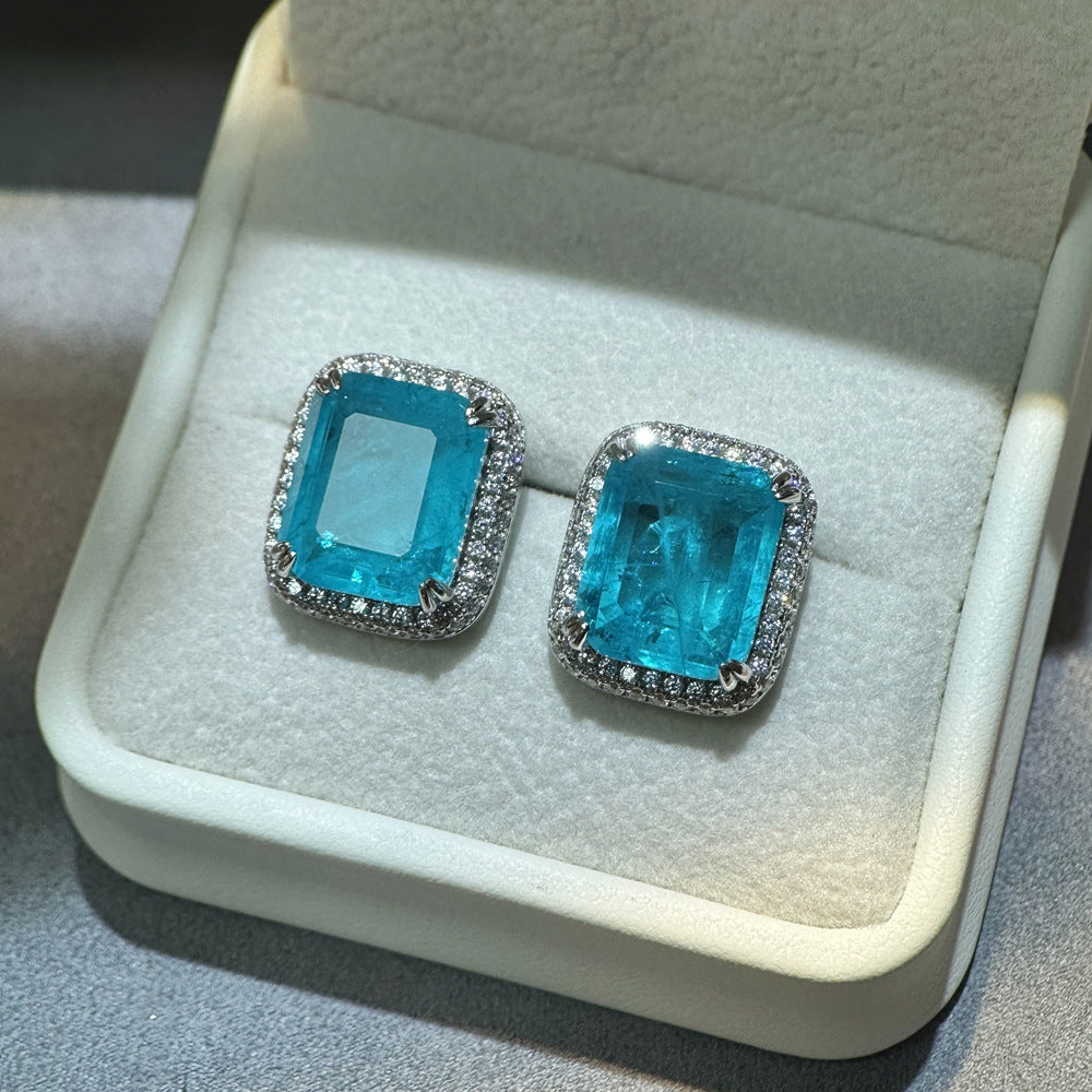 Full Diamond Square Bag Inlaid 4.2 Carat 10 * 12 Wharton Emerald Earrings Women's S925 Sterling Silver Simulation Gemstone Earrings