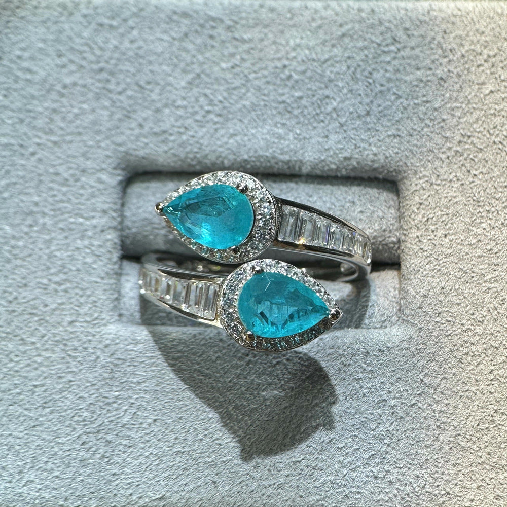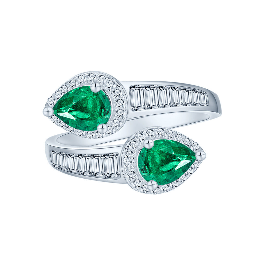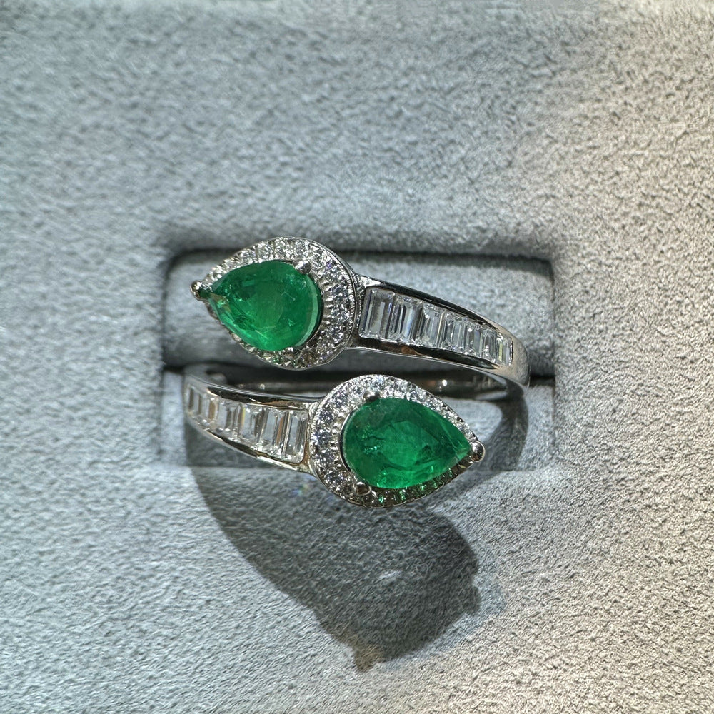 New 5 * 7mm water drop with cotton emerald ring women's S925 sterling silver live ring ins wind premium sense
