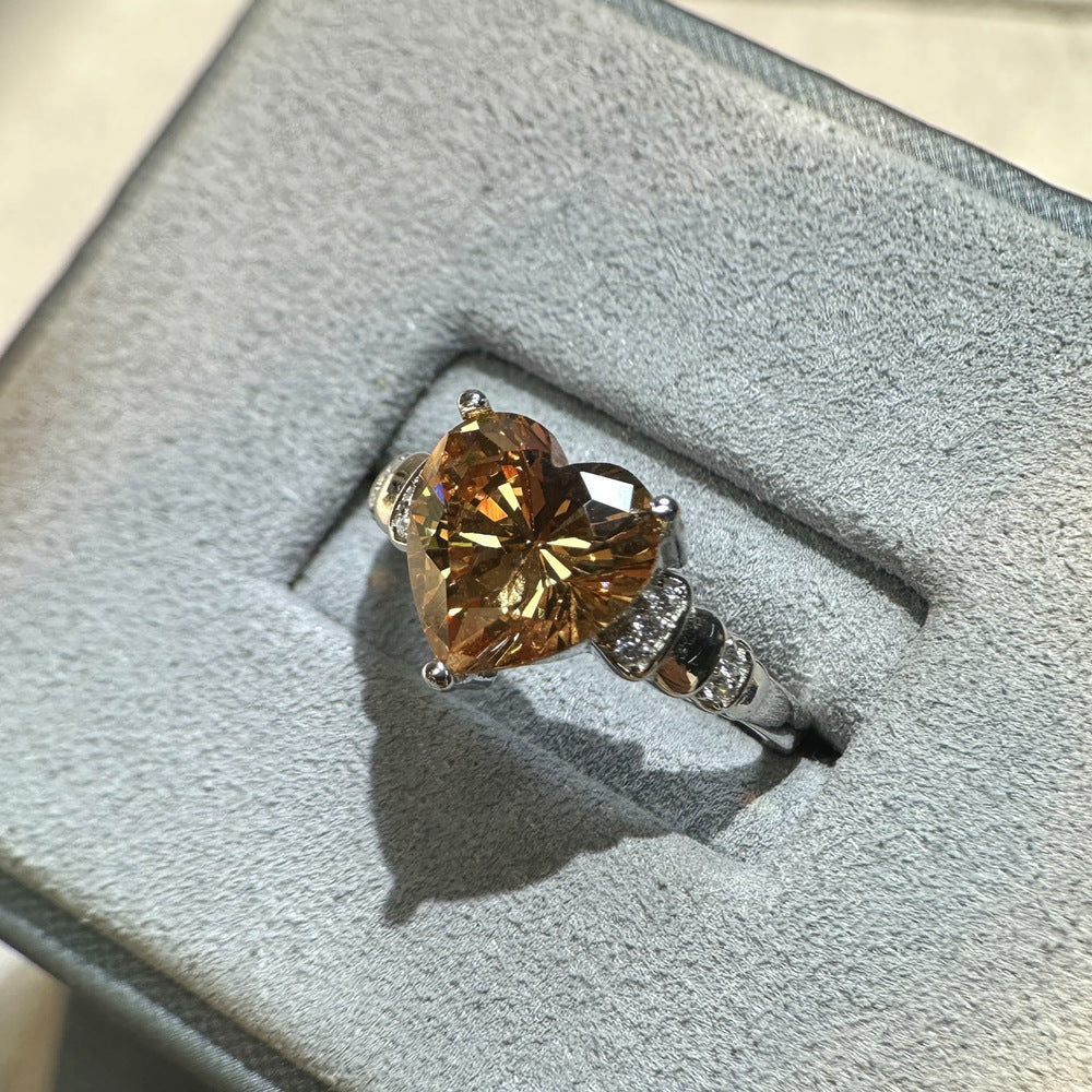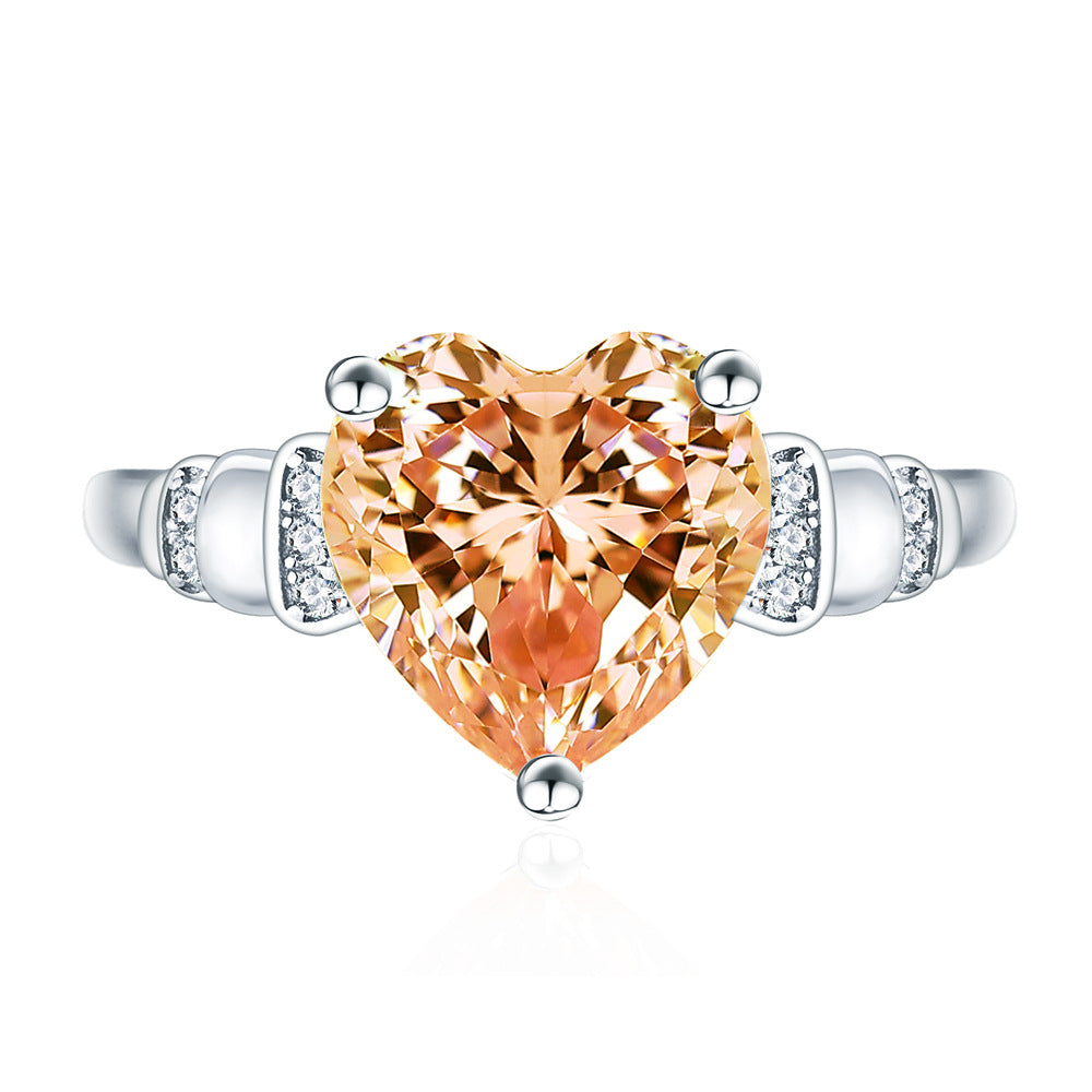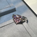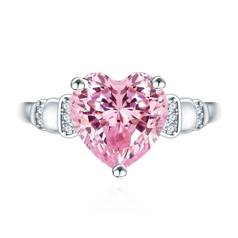 New 6.3 carat pink imitation diamond 10 * 10 heart-shaped sterling silver ring women's European and American cross-border high carbon diamond ring
