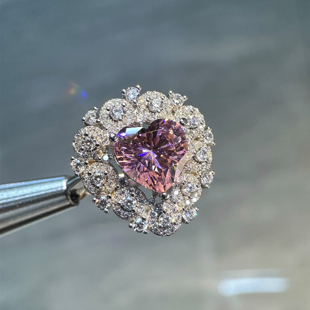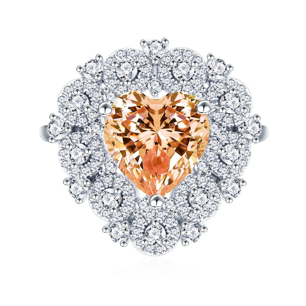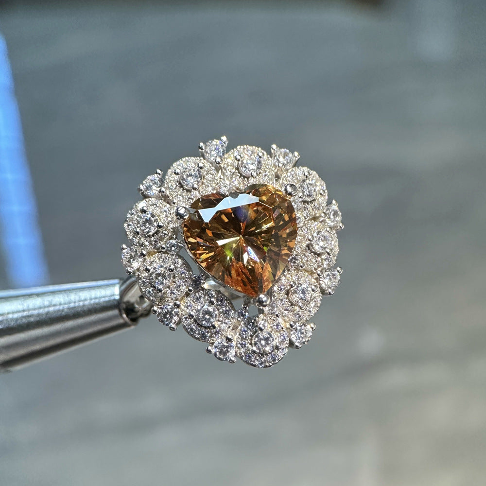 New champagne diamond heart-shaped high carbon diamond ring s925 sterling silver love garden ring European and American luxury niche design