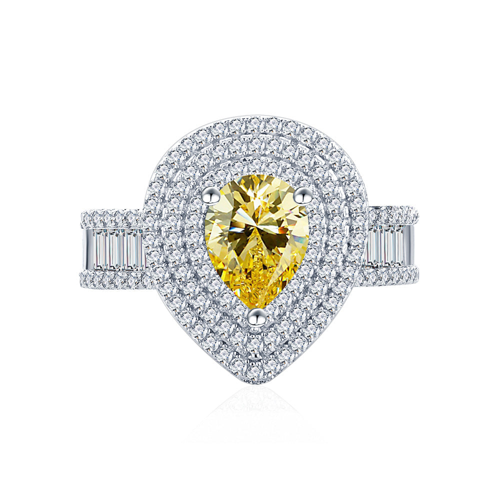 New luxury inset push square full diamond sterling silver ring women's European and American cross-border live broadcast hot sale light luxury high-end jewelry wholesale