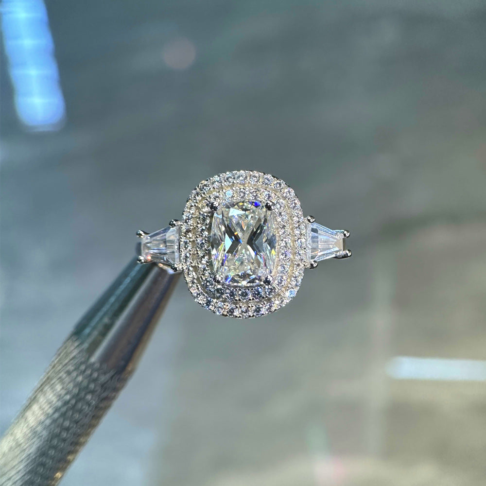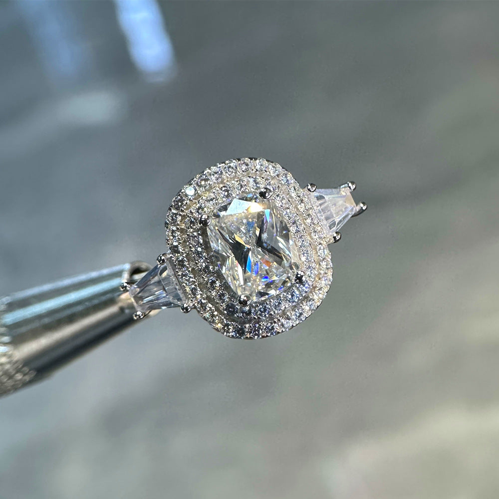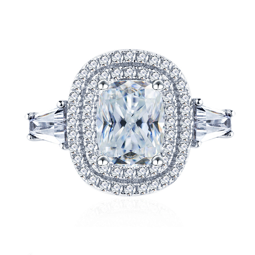 New product 6 * 8 fat rectangular 2ct moissanite sterling silver ring, women's bag full of diamond rings, European and American fashion diamond rings wholesale