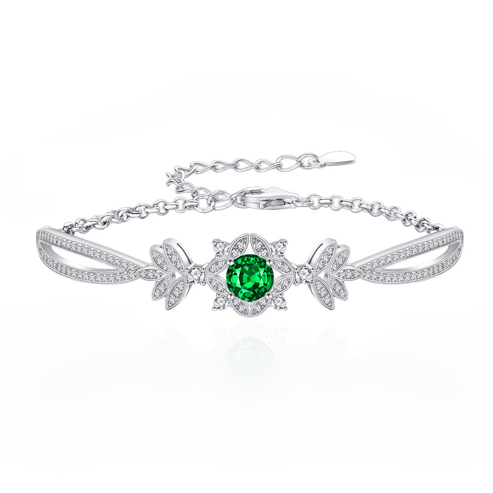 New product full diamond inlaid emerald S925 sterling silver bracelet women's simple temperament light luxury design hand jewelry wholesale