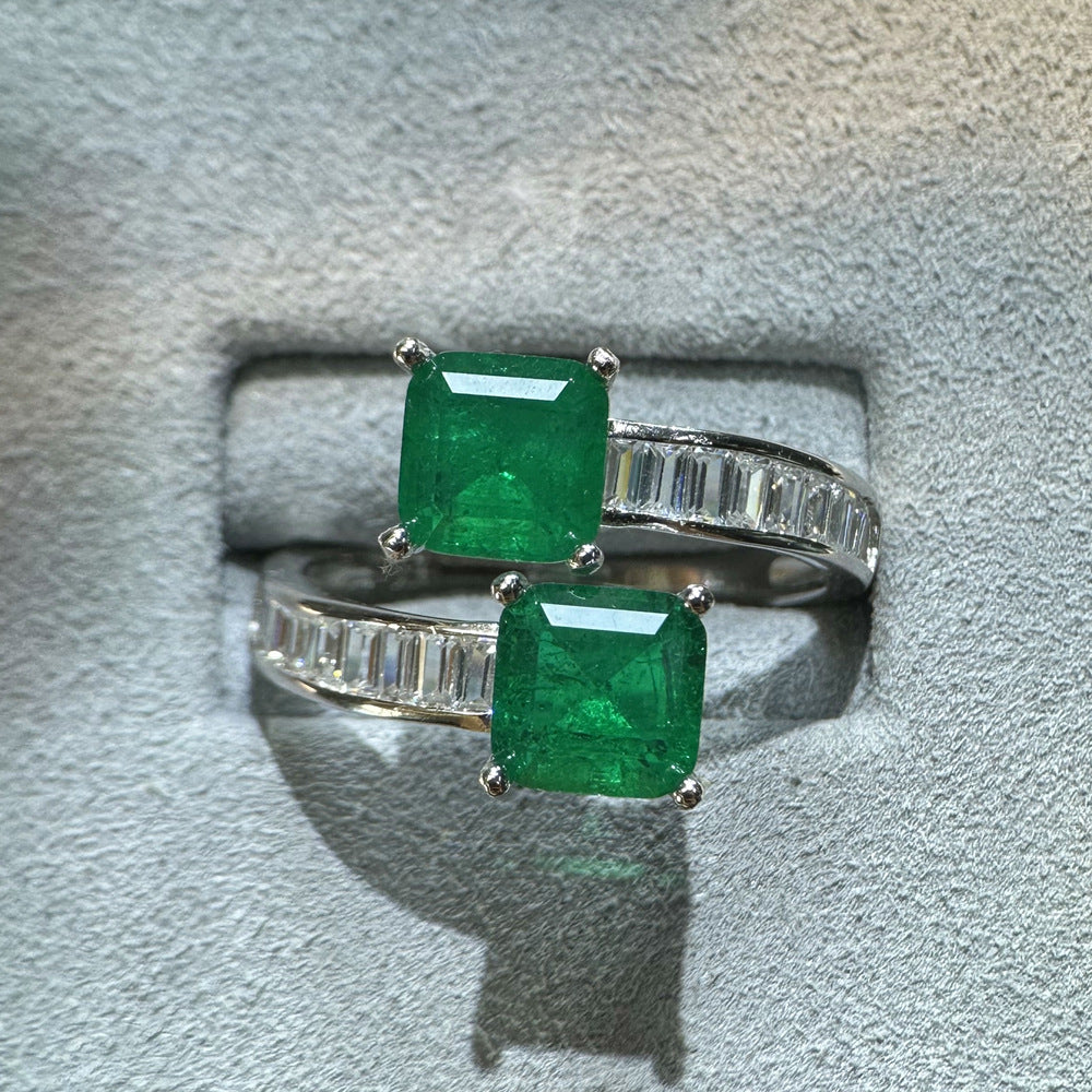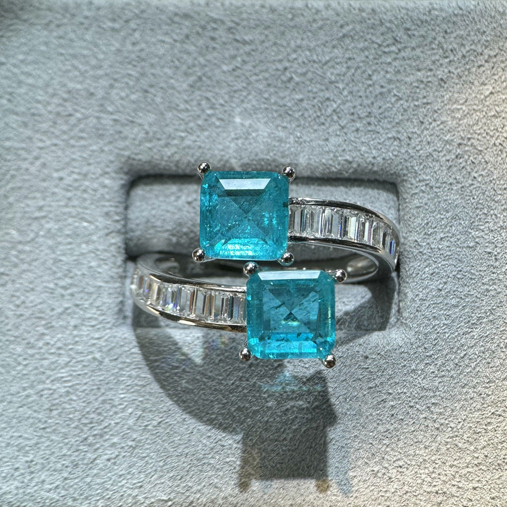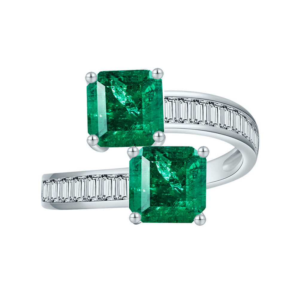 New square 7 * 7mm simulation with cotton emerald ring women's European and American ins niche design open gemstone ring