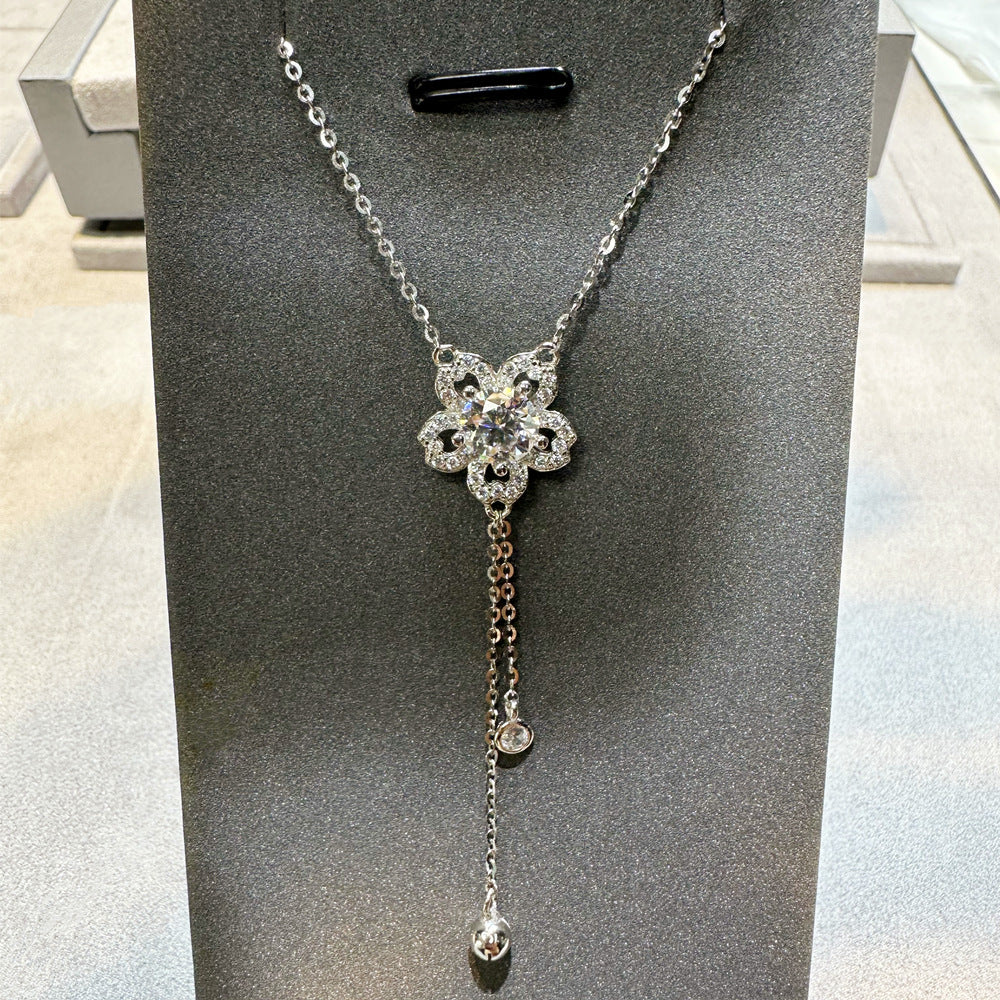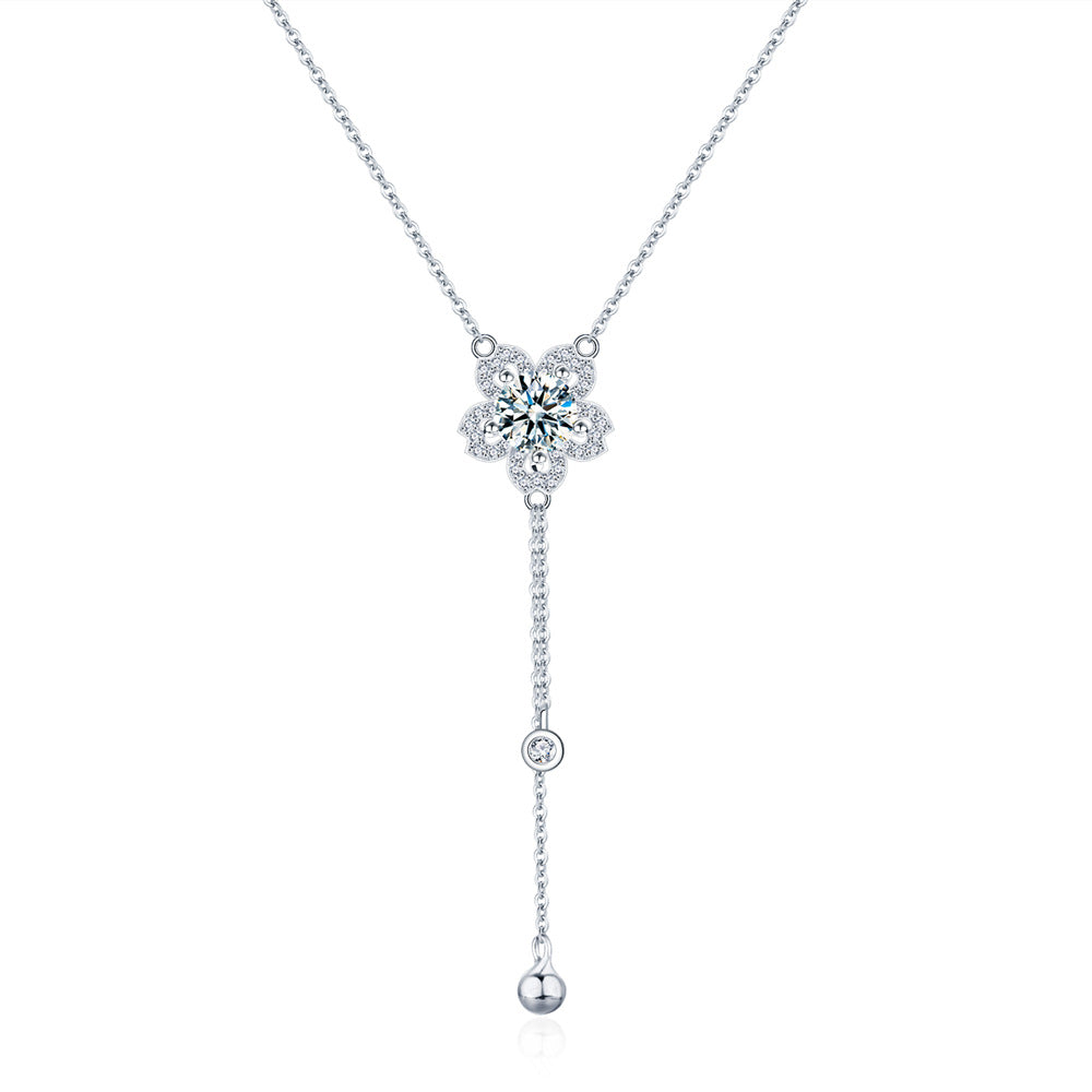 New tassel plum blossom necklace inlaid with 1ct moissanite 925 sterling silver pendant collarbone chain female Internet celebrity jewelry wholesale