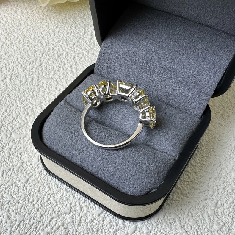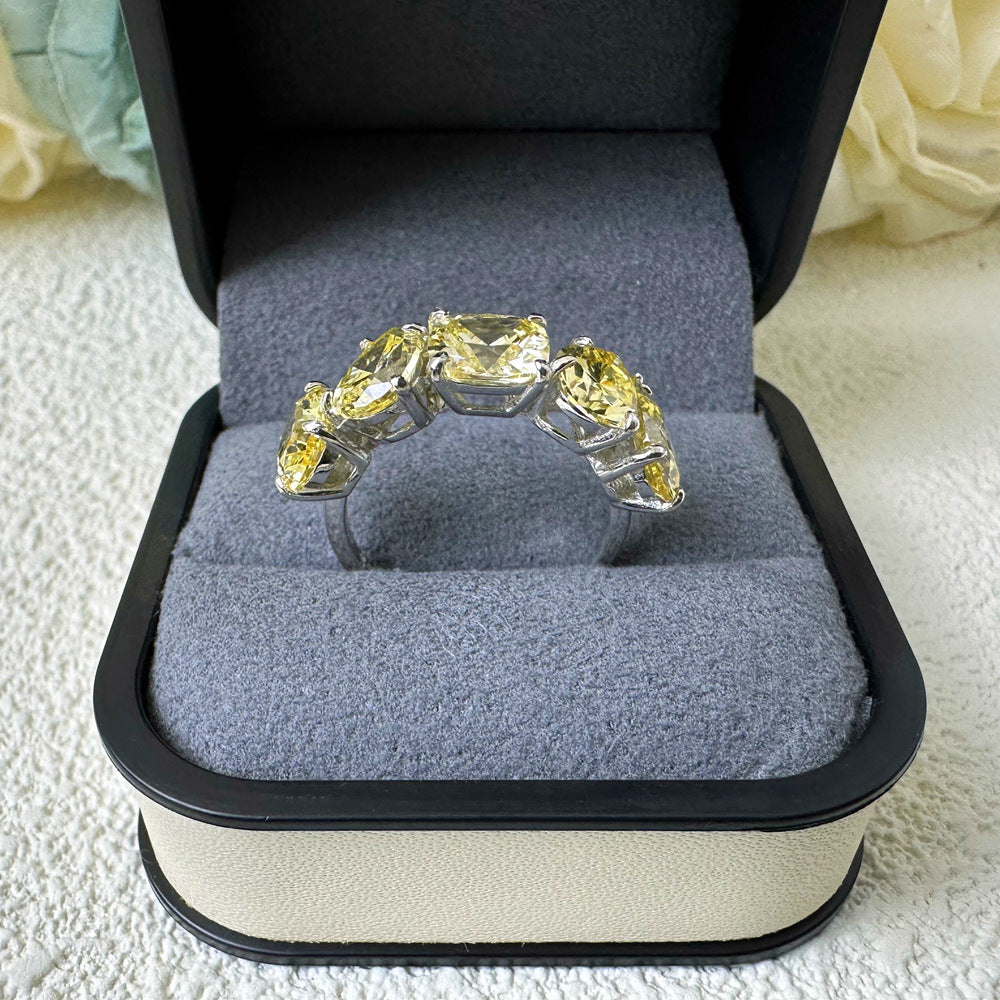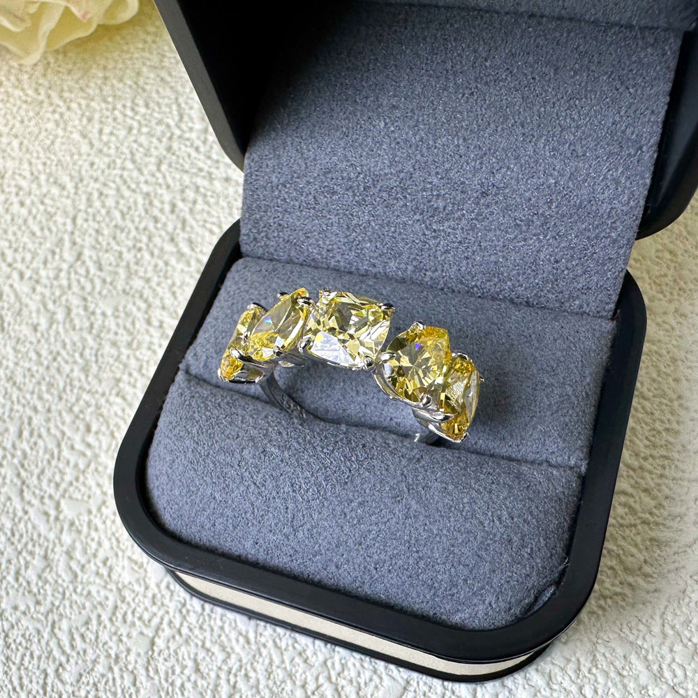 Original design irregular row diamond S925 sterling silver ring women's inlaid yellow diamond ring European and American cross-border light luxury jewelry