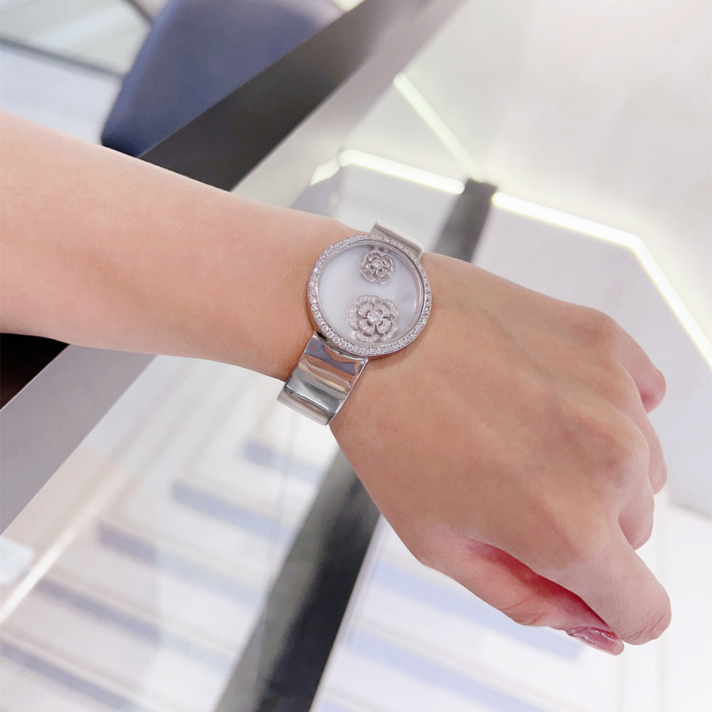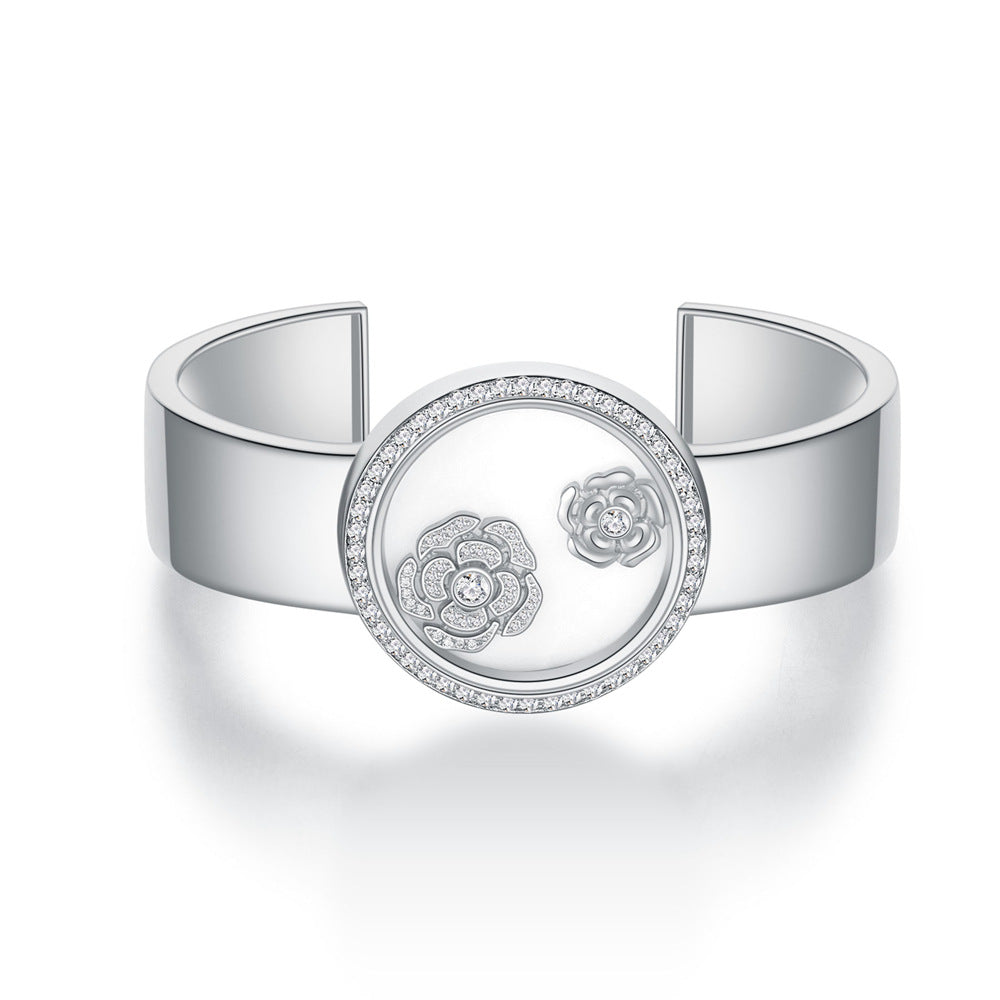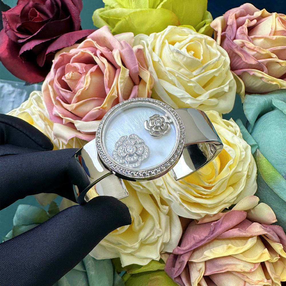Original design new camellia bracelet women's sterling silver European and American cross-border high-end light luxury watch open bracelet
