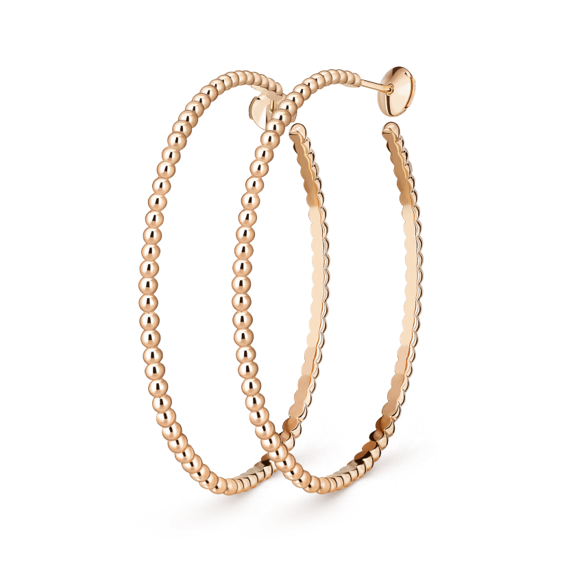 Perlée pearls of gold hoop earrings, large model, 18K rose gold.