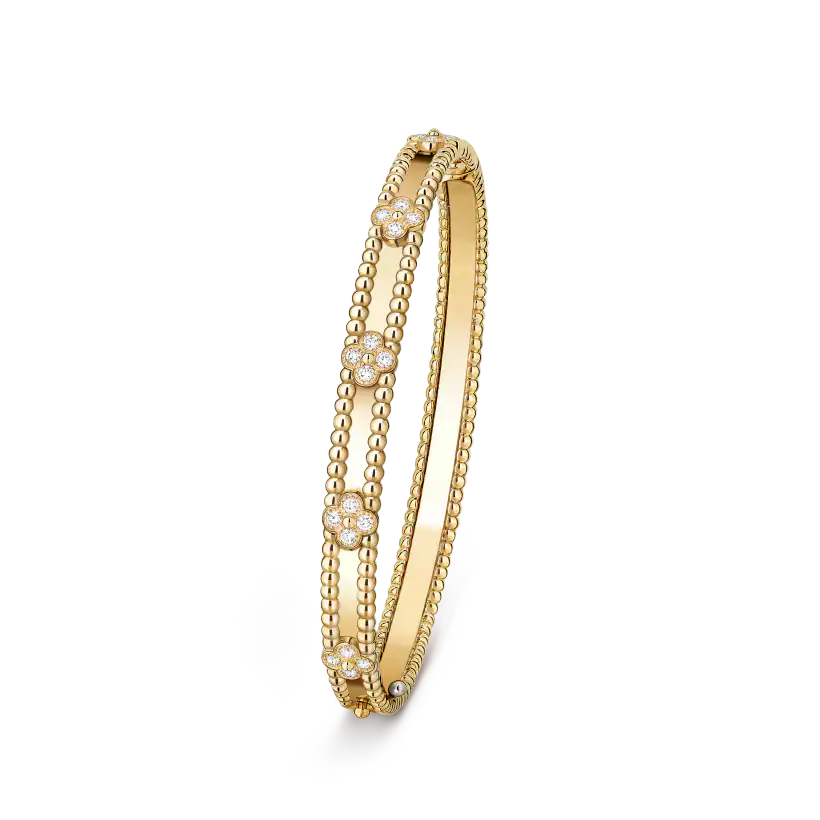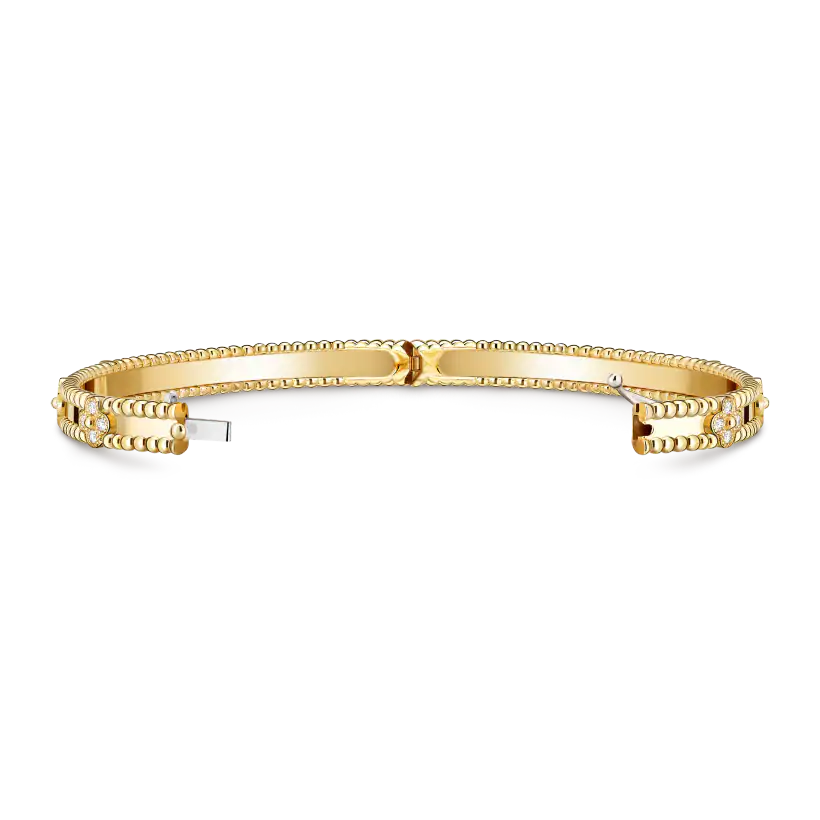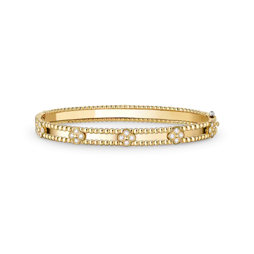 Perlée sweet clovers bracelet, 18K yellow gold, round diamonds, medium model; diamond quality DEF, IF to VVS.