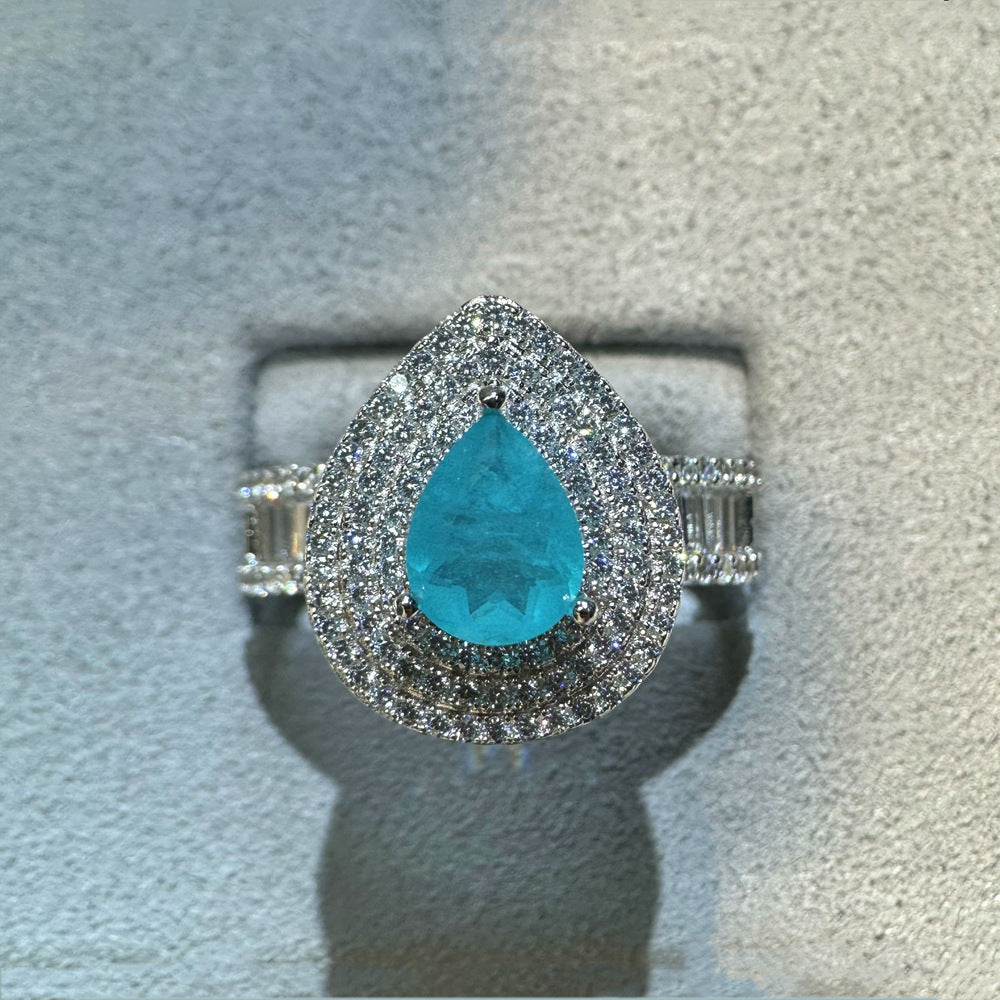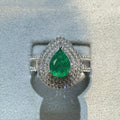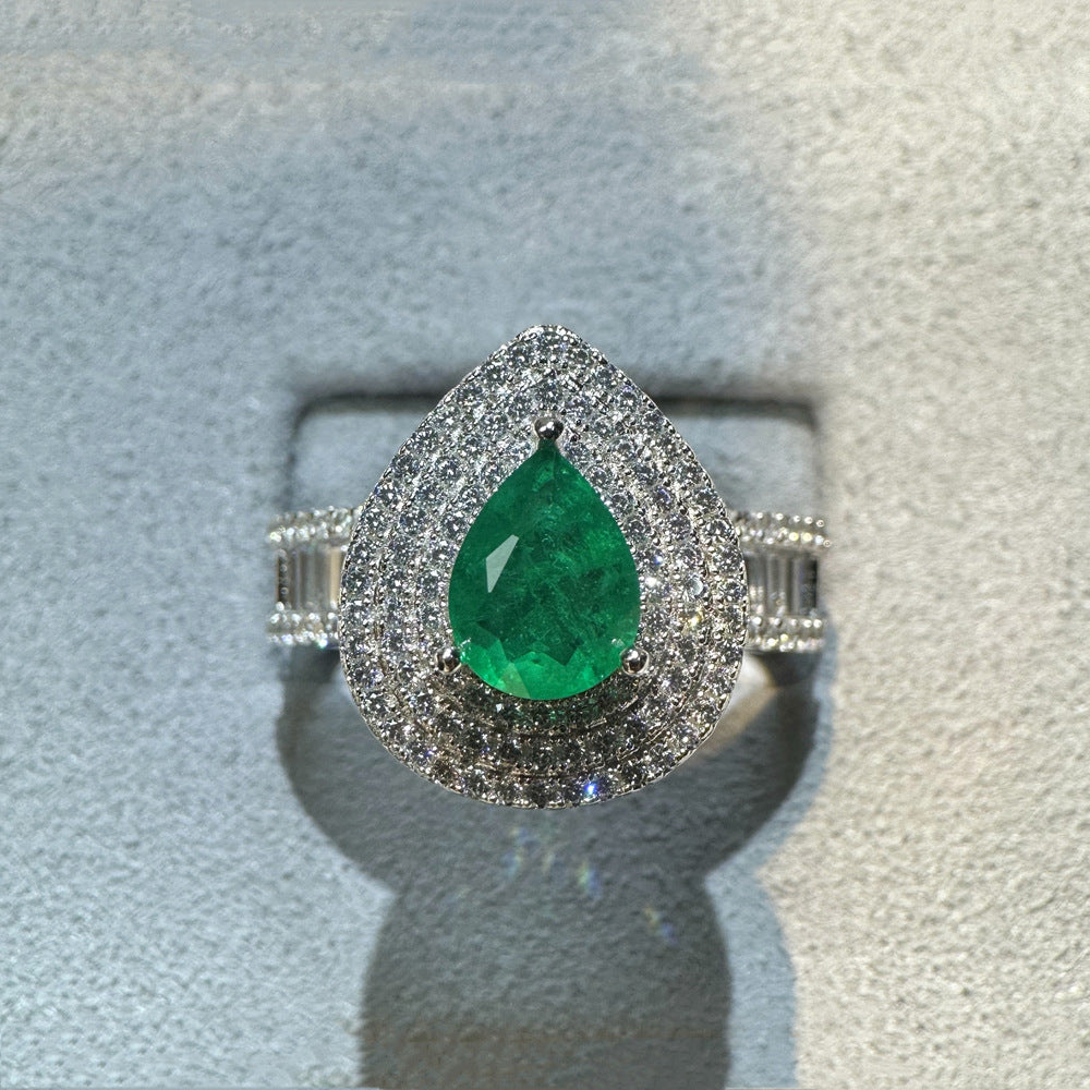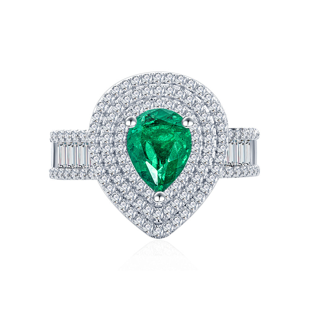 Slightly set with diamonds set with 7 * 9mm water drop shape 1.5 carat S925 sterling silver emerald gemstone ring female European and American style