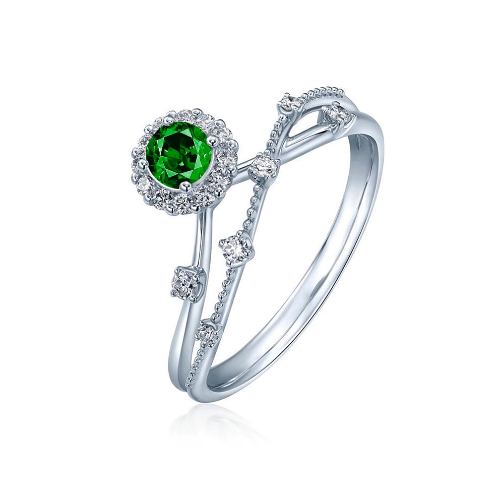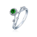 Star track full diamond S925 sterling silver ring women's fashion light luxury high sense inlaid green zirconium ring for cross-border foreign trade