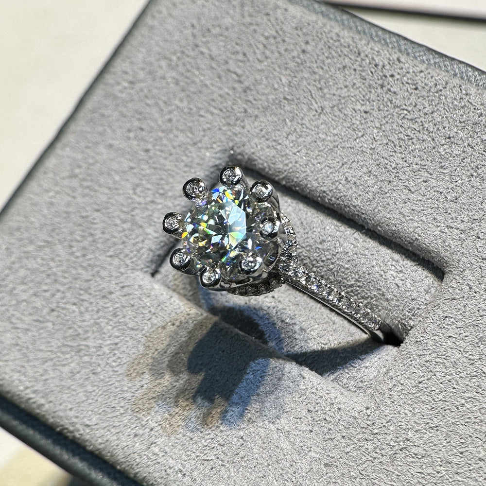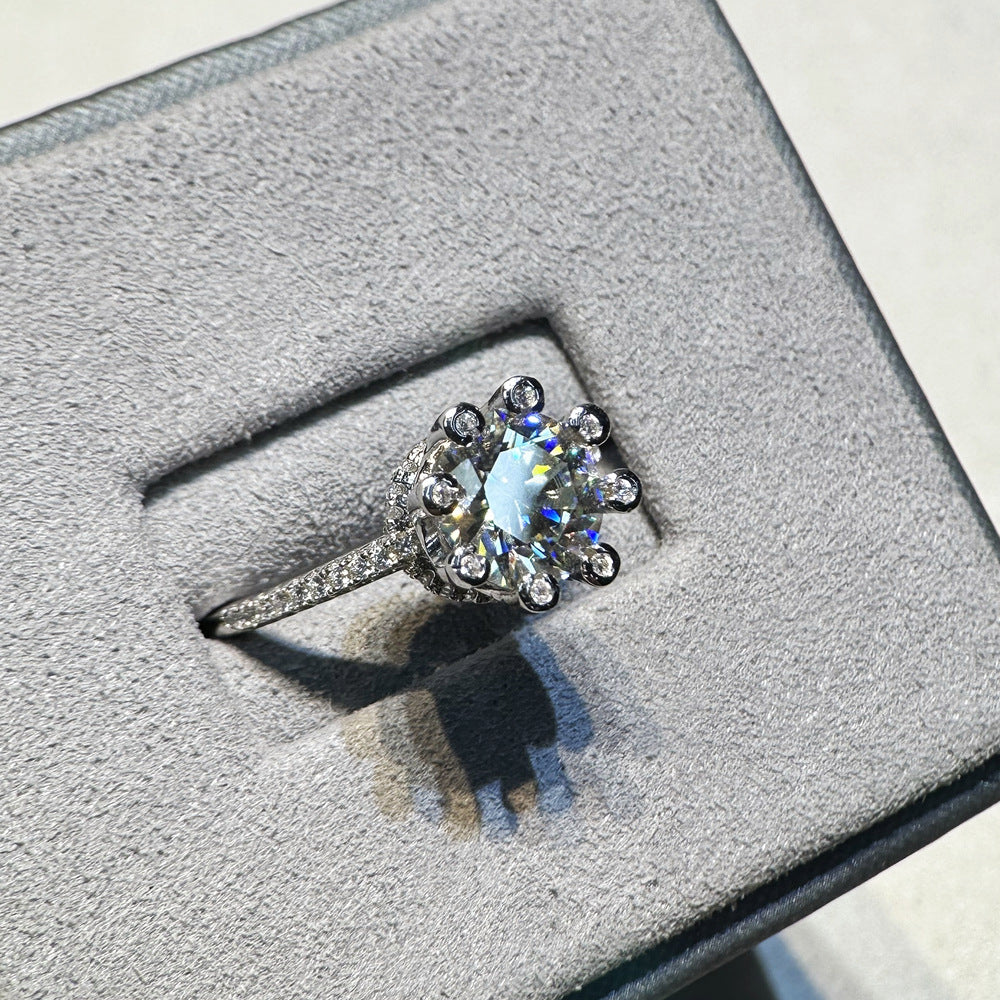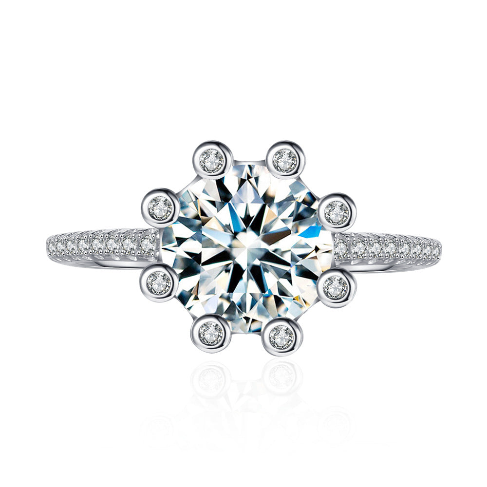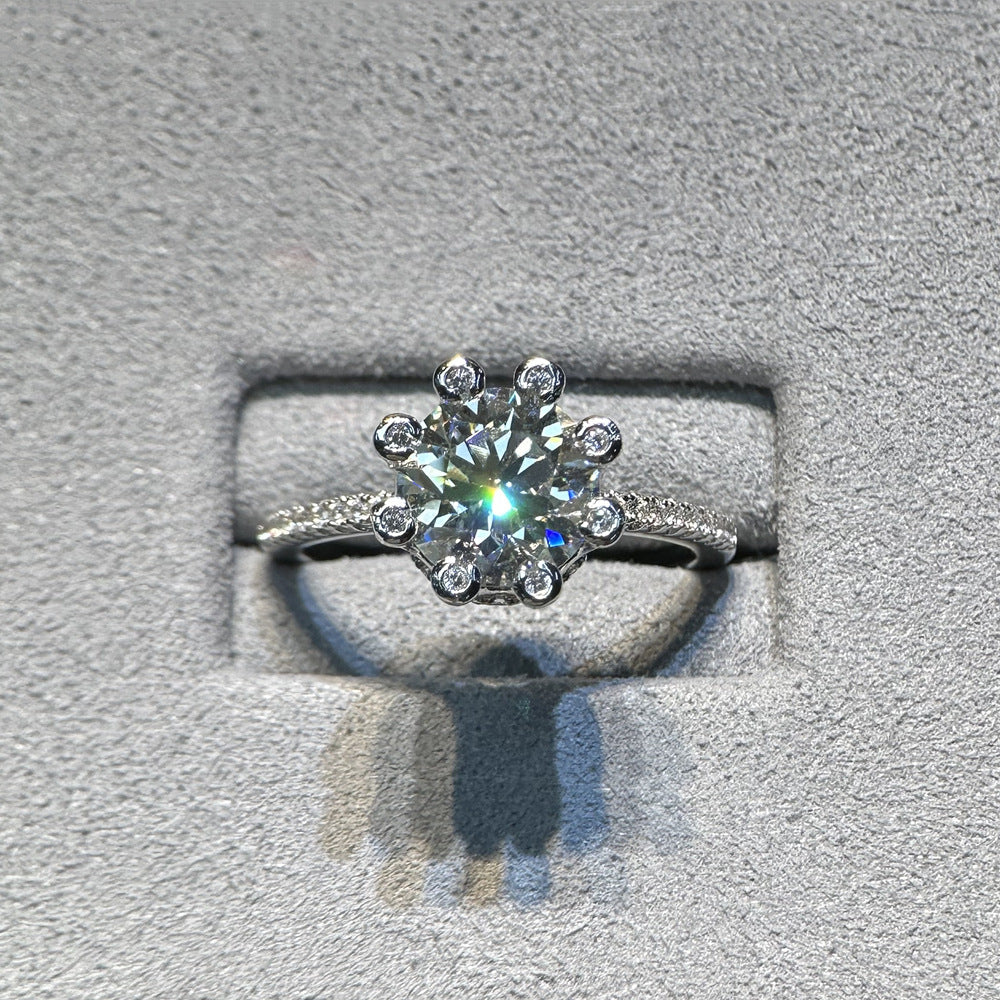 Stars Bright Inlaid 2 Carat 8mm Round Eight Hearts Eight Arrows Mozambican Diamond Ring Women's S925 Sterling Silver Cross-border Foreign Trade
