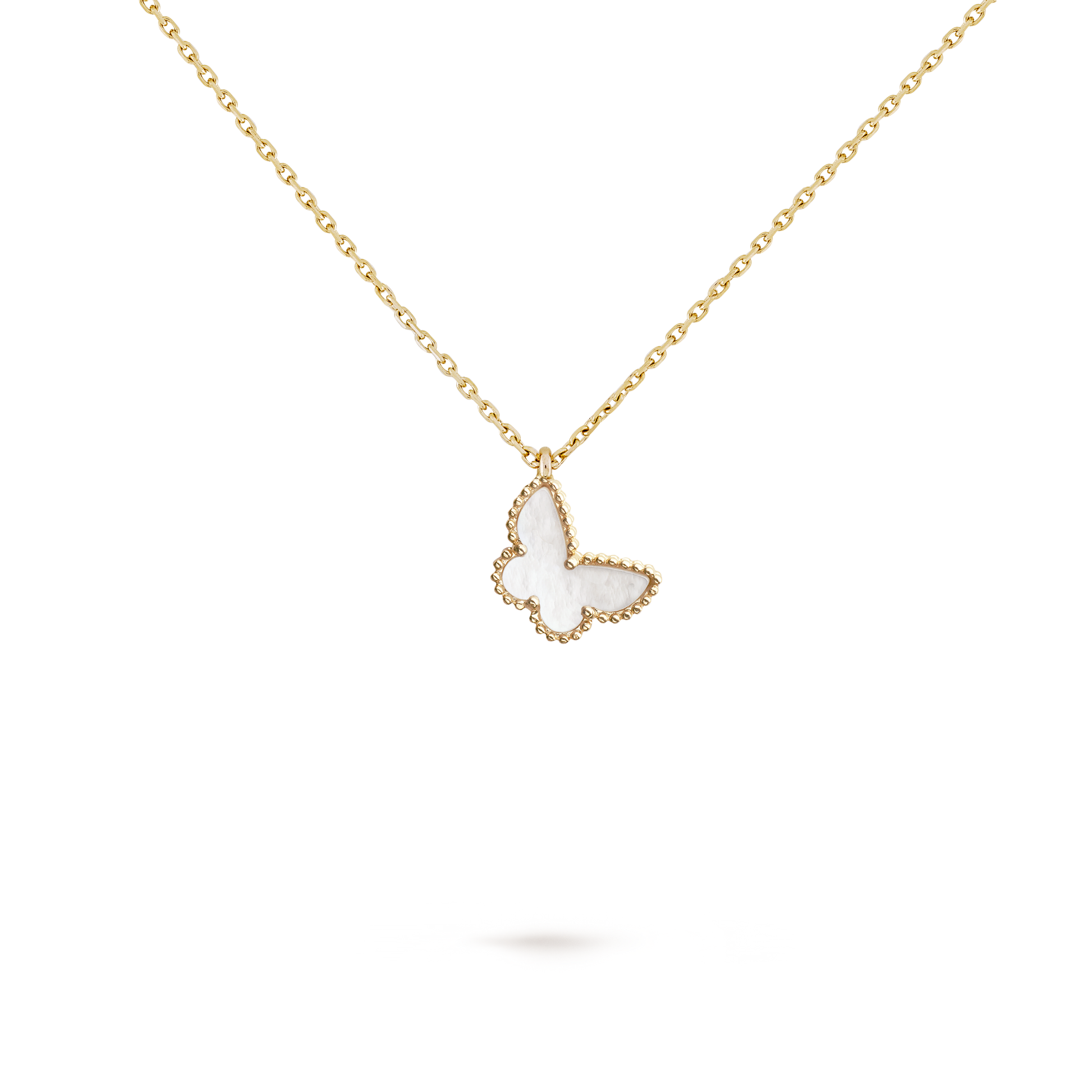 甜蜜蝴蝶吊坠,18K 黄金,白色珍珠母贝。