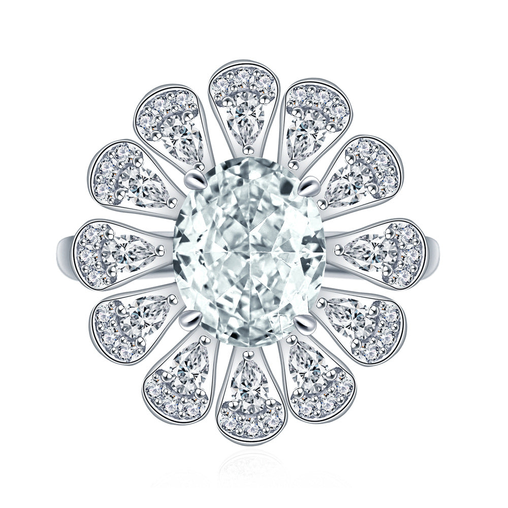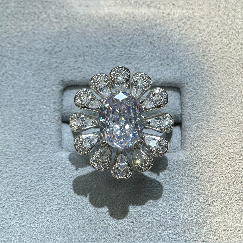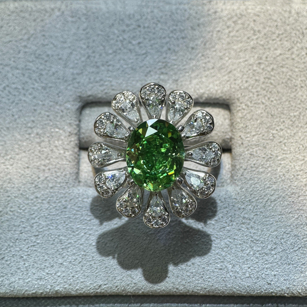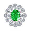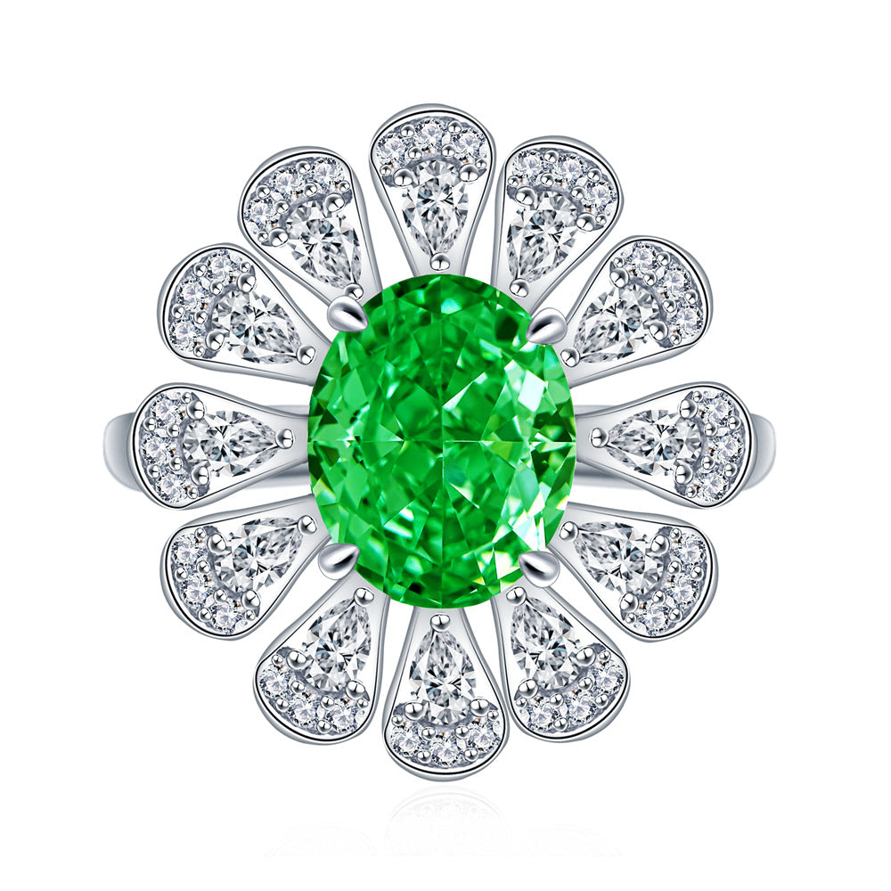 Tsavorite green ice flower cut high carbon diamond ring 8 * 10 oval flower ring European and American cross-border first jewelry wholesale