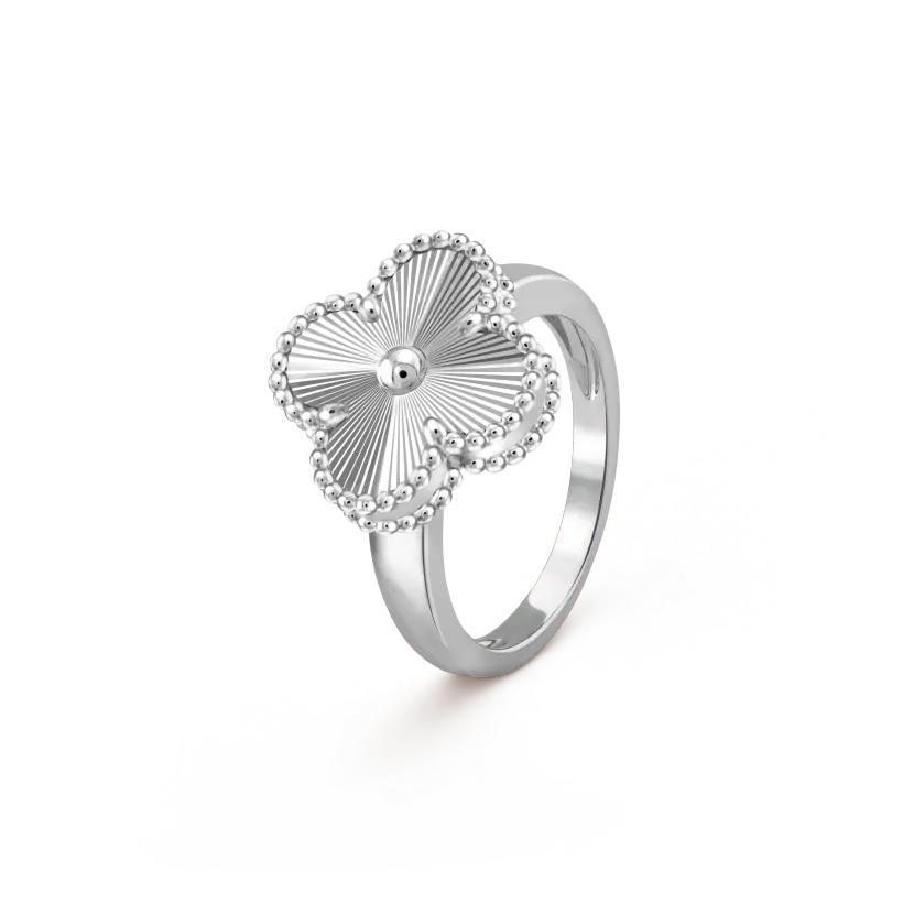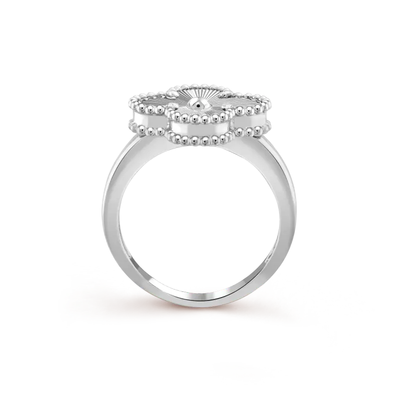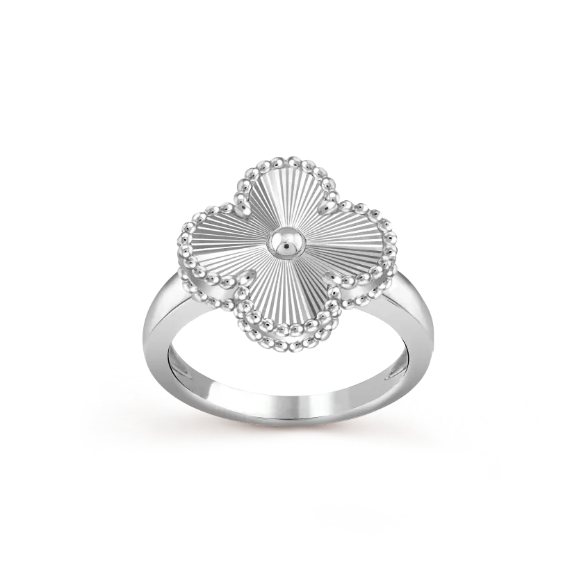 Vintage Alhambra ring, guilloché rhodium-plated 18K white gold.