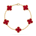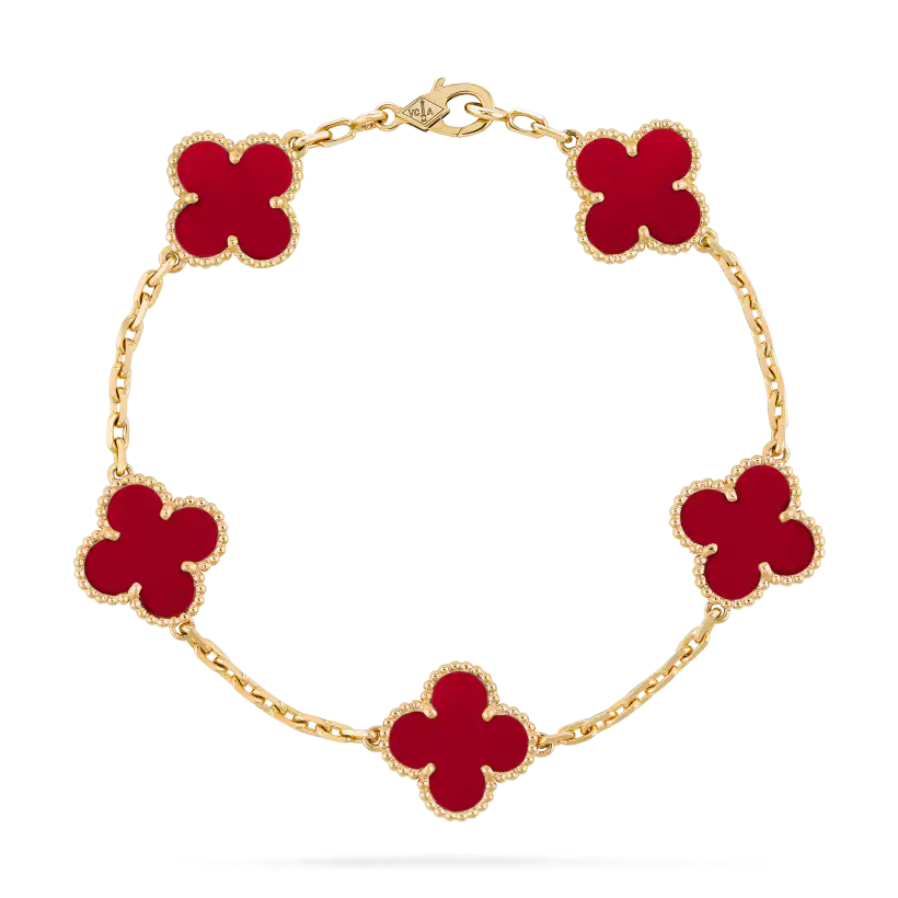 复古 Alhambra 手链,5 种图案,18K 黄金,红玉髓。