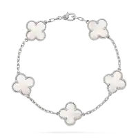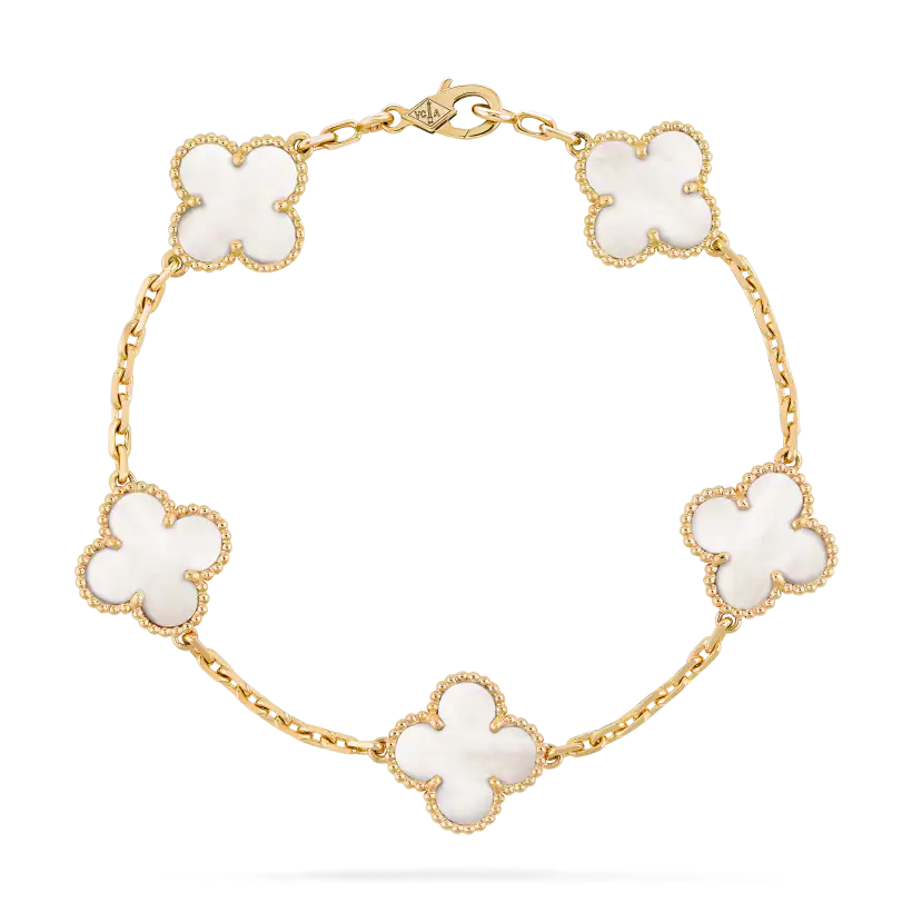 复古Alhambra手链,5图案18K黄金,珍珠母贝