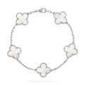 复古 Alhambra 手链,5 个图案,18K 黄金,白色珍珠母贝。