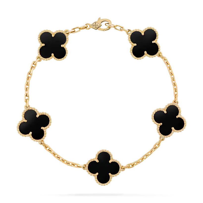 复古 Alhambra 手链,5 种图案,18K 黄金,缟玛瑙。