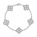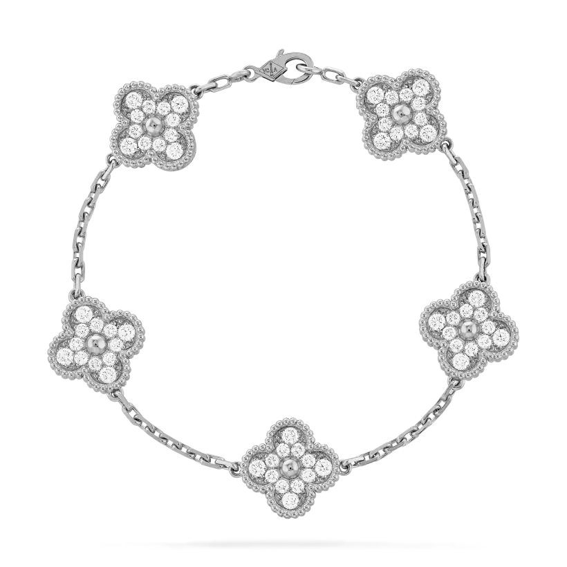 Vintage Alhambra bracelet, 5 motifs, rhodium-plated 18K white gold, round diamonds; diamond quality DEF, IF to VVS.