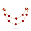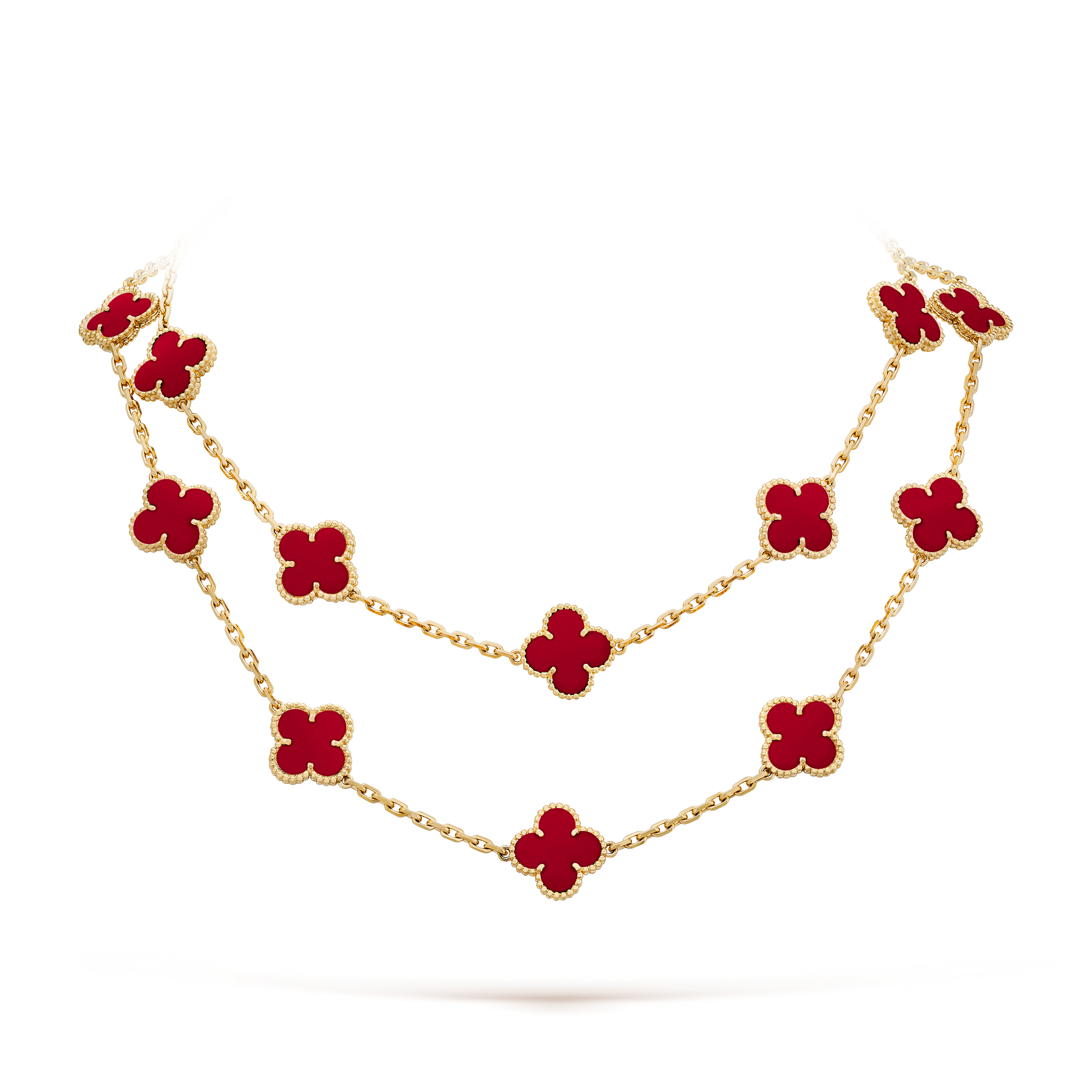 复古 Alhambra 长项链,20 个图案,18K 黄金,红玉髓。