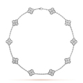 复古 Alhambra 项链,10 个图案,18K 镀铑白金,圆形钻石;钻石品质 DEF、IF 至 VVS。