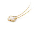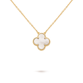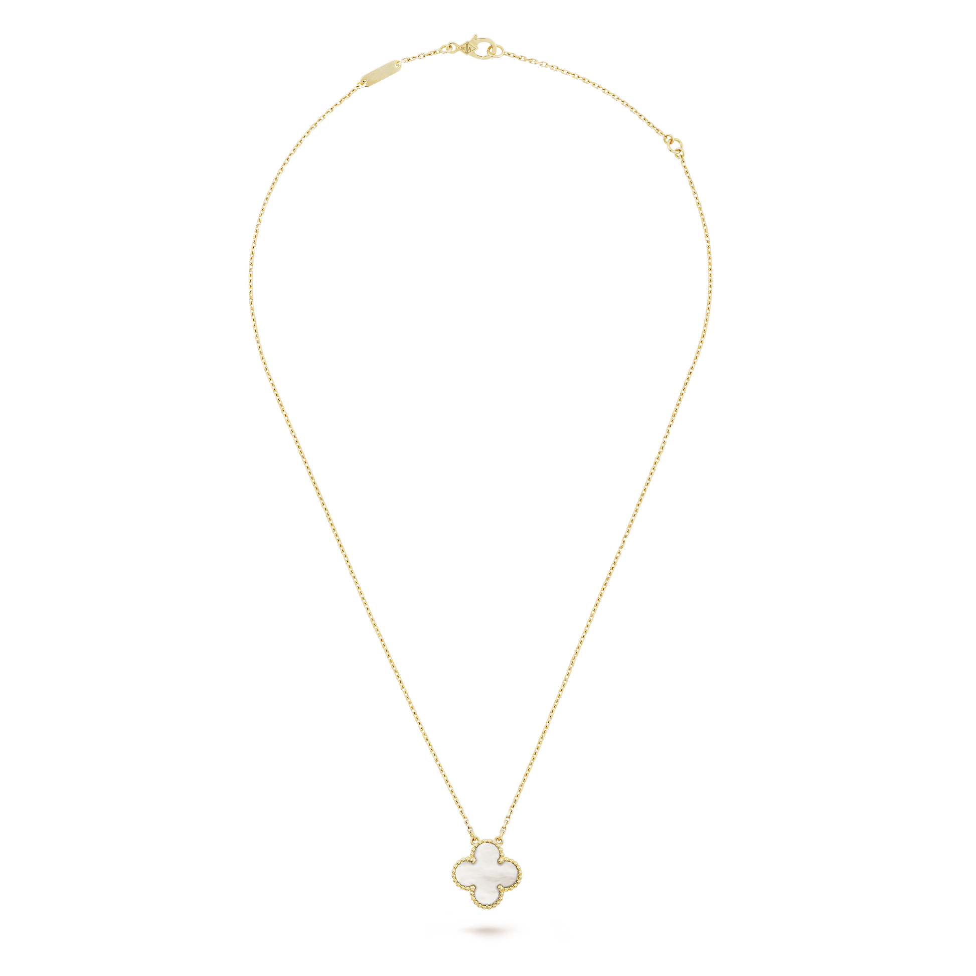 复古 Alhambra 吊坠,18K 黄金,白色珍珠母贝。吊坠与项链链相连