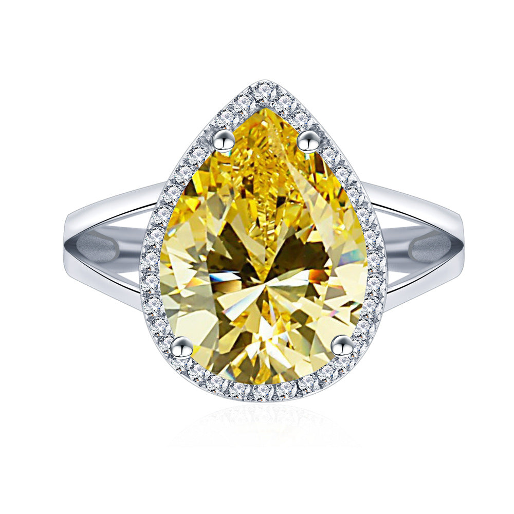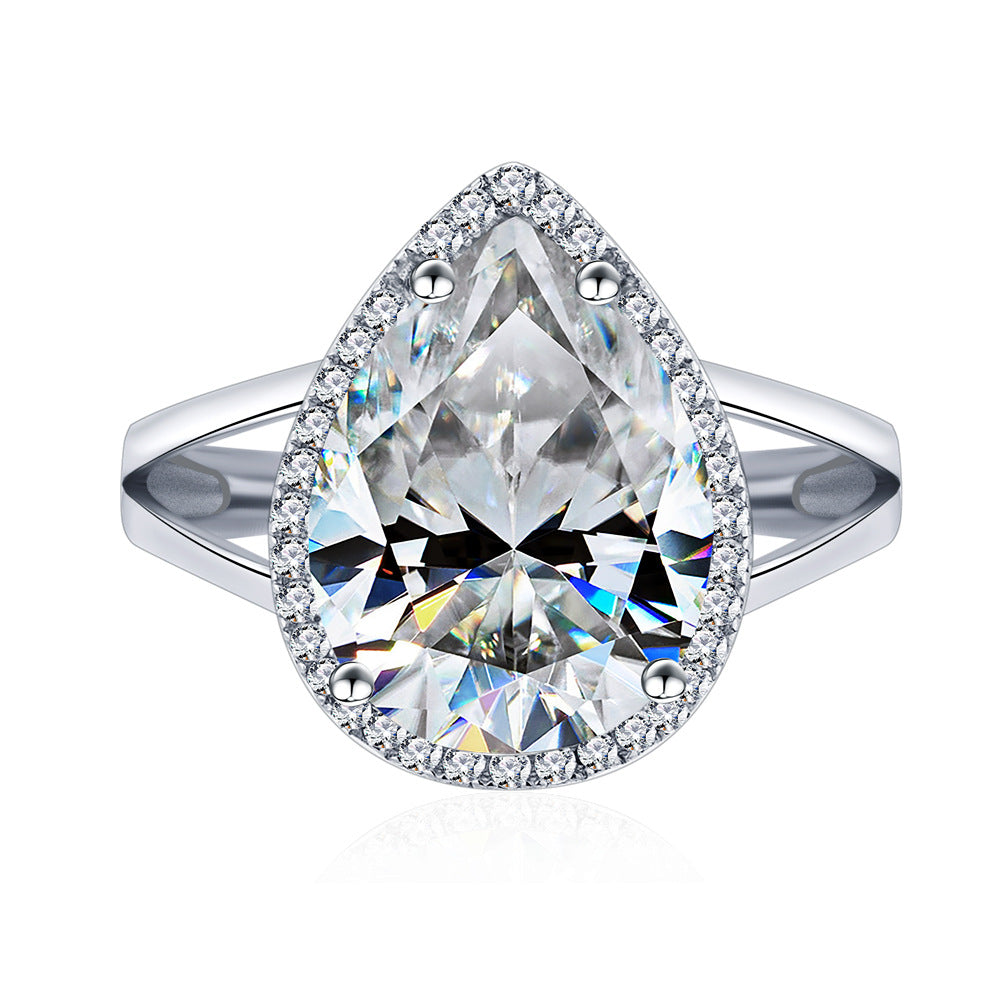 Violet High Carbon Diamond Sterling Silver Ring Women's S925 Sterling Silver 10 * 14 Water Drop 8.5ct European and American Elegant Hand Jewelry