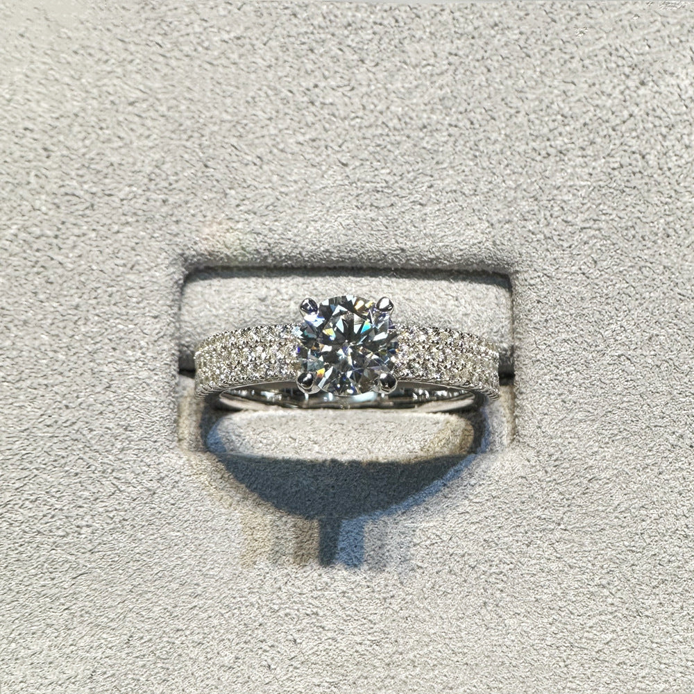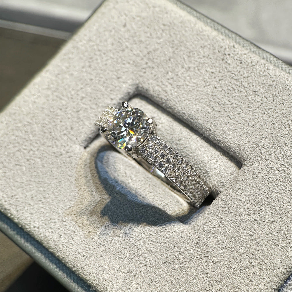 Whole circle slightly inlaid with diamonds inlaid with 1 carat 6.5mm round moissanite diamond ring S925 sterling silver ring European and American cross-border